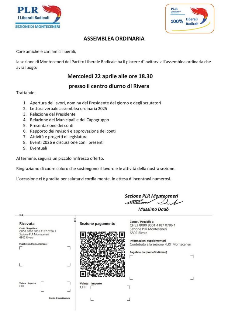PLR Monteceneri - Assemblea ordinaria